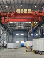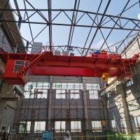 桥式起重机是横架于车间、仓库和料场上空进行物料吊运的起重设备。由于它的两端坐落在高大的水泥柱或者金属支架上,形状似桥。桥式起重机的桥架沿铺设在两侧高架上的轨道纵向运行,可以充分利用桥架下面的空间吊运物料,不受地面设备的阻碍。它是使用范围.广、数量.多的一种起重机械。