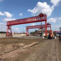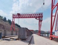 提梁机既可两台配合抬吊预制梁,也可以单台起重机配双吊具起吊预制梁,两台同时起重的提梁机各自的起重量一般为450吨,单台起重的提梁机起重量通常可达900吨。它配置支腿行走、天车行走及天车起吊设备,可以实现.机械化动作。主要用于将预制梁从制梁台提吊至存梁台位,预制梁养护完成后将其从存梁台位吊运到运梁车上。作为起重设备完成架桥机的组装和拆卸。还用于架设墩身不高的旱桥。